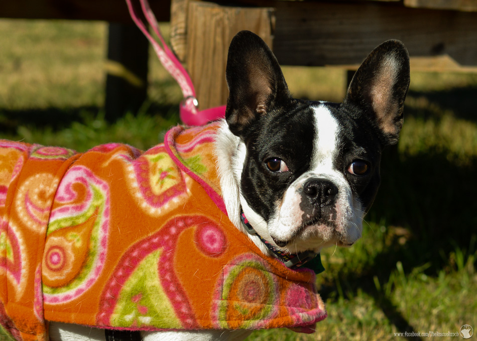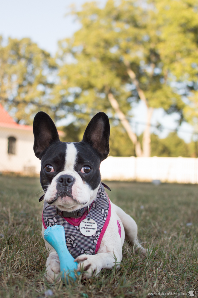 Bianca is an adorable “Frenchton” (Boston Terrier/French Bulldog mix) who arrived the beginning of December 2015. Bianca needed rescue as she had begun “acting out” in her current home and not getting along with the other dog in her home.