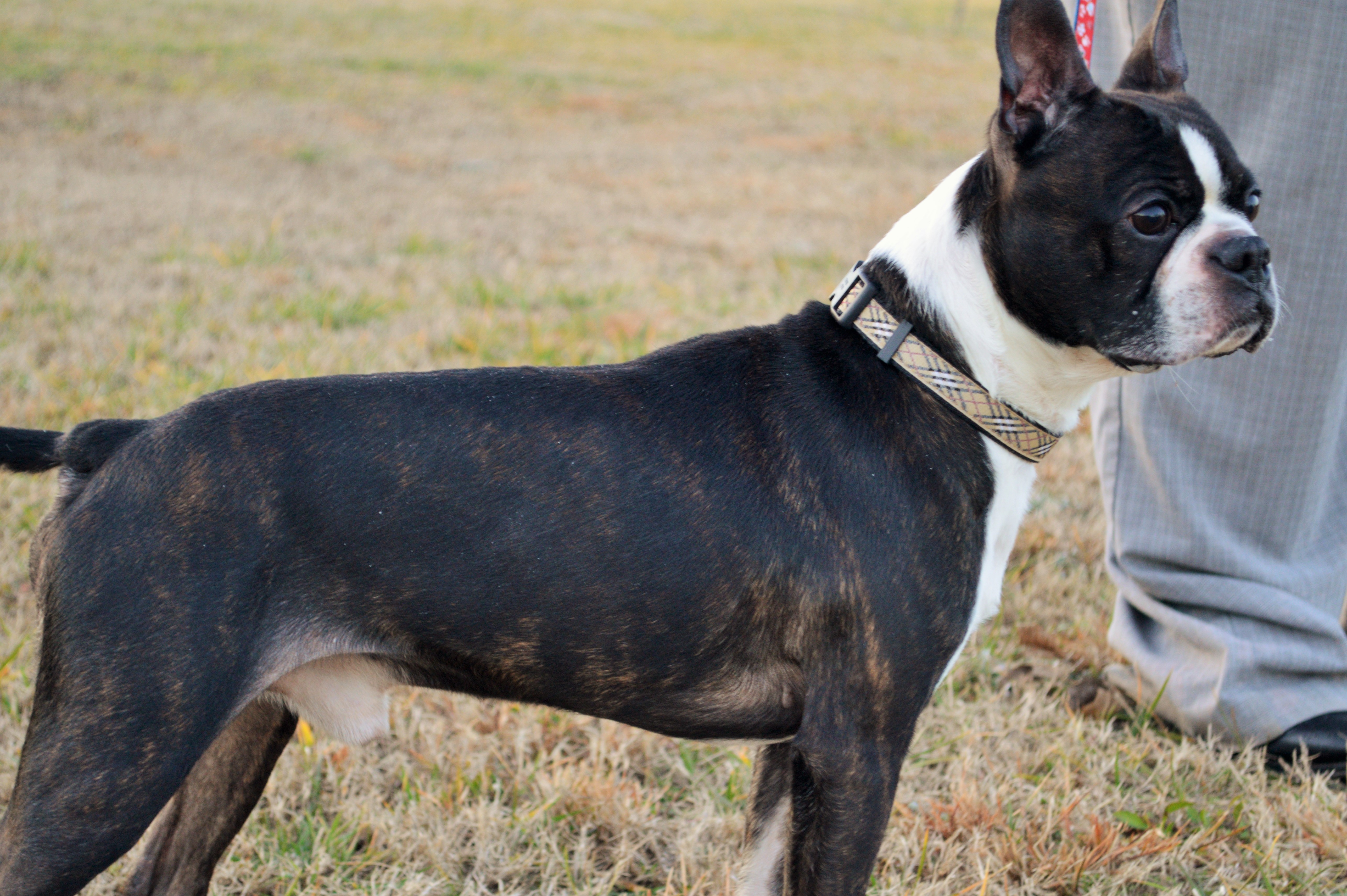 Duke arrived as part of the breeder dump case. Duke is a beautiful 8 year old Boston boy with a stunning brindle coat.