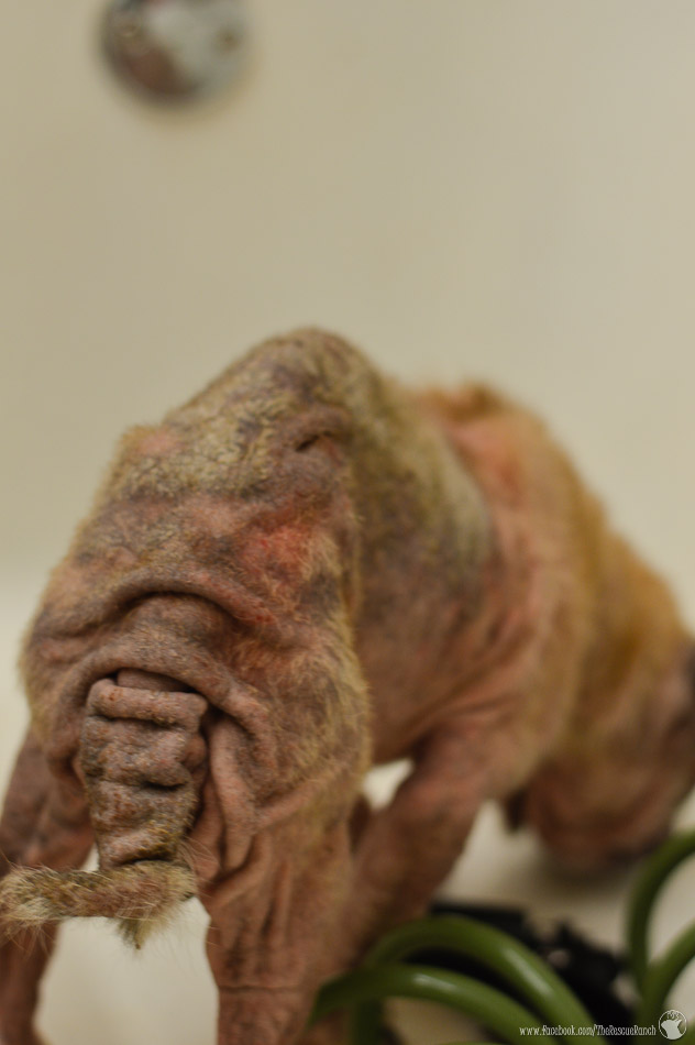 Poor Poe Pug… He’s a train wreck from his hairless pug nose to his hairless pug tail.